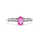 Anello in oro bianco 18 kt con zaffiro rosa taglio smeraldo e diamanti taglio brillante sul gambo.