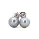 Orecchini in oro bianco 18 kt con perle 8 mm, diamanti taglio brillante e chiusura a clip e perno.