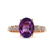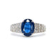 Anello in oro bianco 18 kt con zaffiro centrale taglio ovale e doppia fascia di diamanti taglio brillante sul gambo.